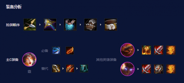 二阶段时:最优情况是2斗士+2射手(EZ+老鼠),五级再补上猪妹或者其他二星卡。有装备就做,体系里面只有主C的装备是至关重要的,其他的卡装备是无所谓的。一些通用装备,泰坦日炎斗士可以直接用的,过渡阵容甚至可以选择三玉龙这样的强力羁绊,给到猴子贾克斯,后期再给呲呲和杰斯。正常上人口2-1上四级,2-3或者2-5上五级,3-1上六级,尽可能去连胜,不能连胜的话保经济最重要,经济比血量重要,这套阵容想要吃鸡需要大量的经济。三阶段时:就要根据自己现在的质量去决定要不要快速拉六级拉七级去进行压制保连胜,但是核心思路仍然是以经济最重要。
