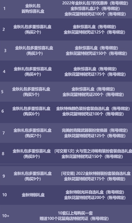 购买金秋礼包时基于购买礼包的数量发放金秋花篮特别凭证或礼盒