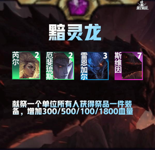 【黯灵龙】英雄们还可从被献祭英雄的第一项特质中获益。这个效果不会提升该羁绊的羁绊人数