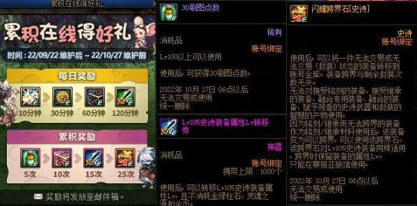 其实累计奖励,才是最关键的地方:当签到5次后,给予30点刷图点数;签到10次,2个耀银品级调整箱;签到15次,3张装备等级转移券;签到25次,闪耀跨界石【史诗】。