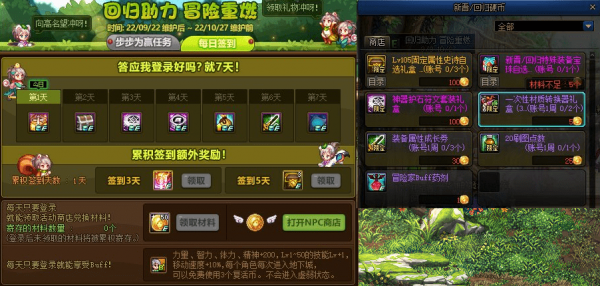 策划对于回归玩家,寄予了“特殊照顾”,在奖励道具方面,可谓丝毫的不吝啬。此次回归活动,玩法模式改变了,分为3个类型奖励:步步为赢任务、签到和商店兑换。