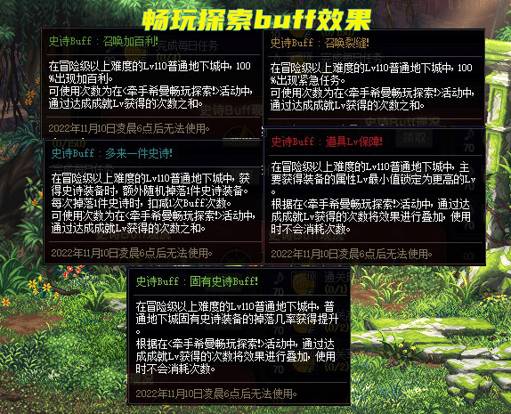 畅玩探索这个活动,其实对于玩家来说,并不是太陌生,之前出过很多次,本期依然老样子,做任务拿硬币,顺带提升探索等级。首先希曼畅玩探索,会出现一系列buff,助力玩家获取史诗、召唤加百利和裂缝。