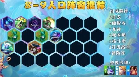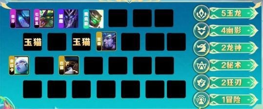 组成羁绊:5玉龙4幽影龙2龙神2狂刃战士2秘术师1冒险家