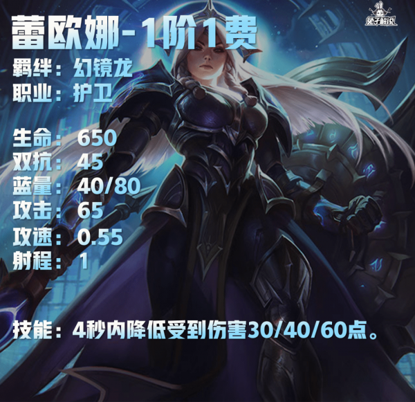 蕾欧娜技能:4秒内降低受到伤害30/40/60点。