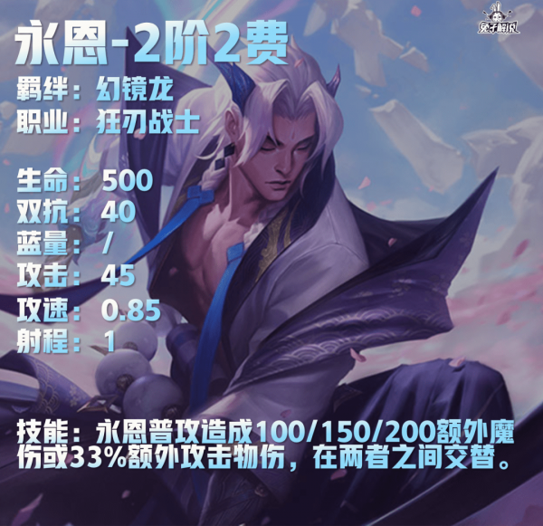 ● 法术之剑:幻镜龙弈子每次攻击可叠加额外法术强度,随羁绊阶数提高。每场战斗后重置。