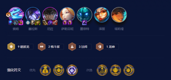 七人口之前不搜牌,四阶段七人口大搜,搜出两星塞拉斯和整体阵容,索姆也一定要搜出一个。然后上八人口找成型阵容,没有碧波转这个阵容很弱。