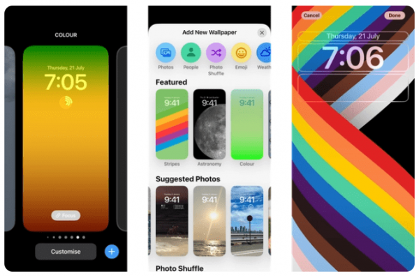 或者,可以点击“自定义主屏幕”按钮来扩展控件。在这里,可以启用“易读性模糊”,这样可以更轻松地阅读应用标签。如果想为主屏幕选择不同的照片,请点击照片按钮。还可以使用颜色选择器图标创建基于颜色的主屏幕壁纸,并设置自己的渐变。再次点击“完成”按钮,锁定屏幕已准备就绪。