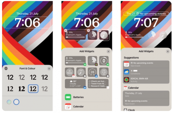 要将小部件添加到您的锁定屏幕,只需点击它,然后使用拖放来移动它。点击小减号图标以删除小部件。也可以在顶部自定义日期。那里的小部件将是纯文本的;小部件数据将在日期之后显示。不过,对于查看活动数据或提醒即将到来的日程非常有用。