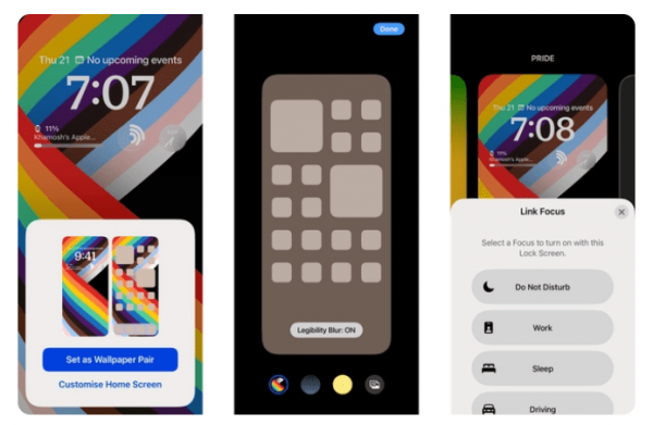 完成自定义后,点击“完成”以查看配对选项:可以点击“设置为壁纸配对”按钮为锁定屏幕和主屏幕设置壁纸。现在,当切换到不同的锁定屏幕时,主屏幕壁纸也会发生变化。