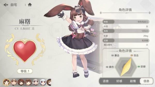 自宅:在这查看现在伙伴们的状态,可以在这里给角色赠送礼物哦