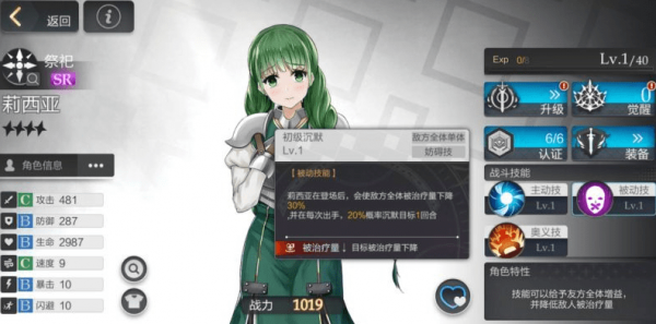 莉西亚的被动技能可以降低敌方所有单位治疗量,再面对有回血的敌人时有着不错的效果,而且出手还有几率沉默目标