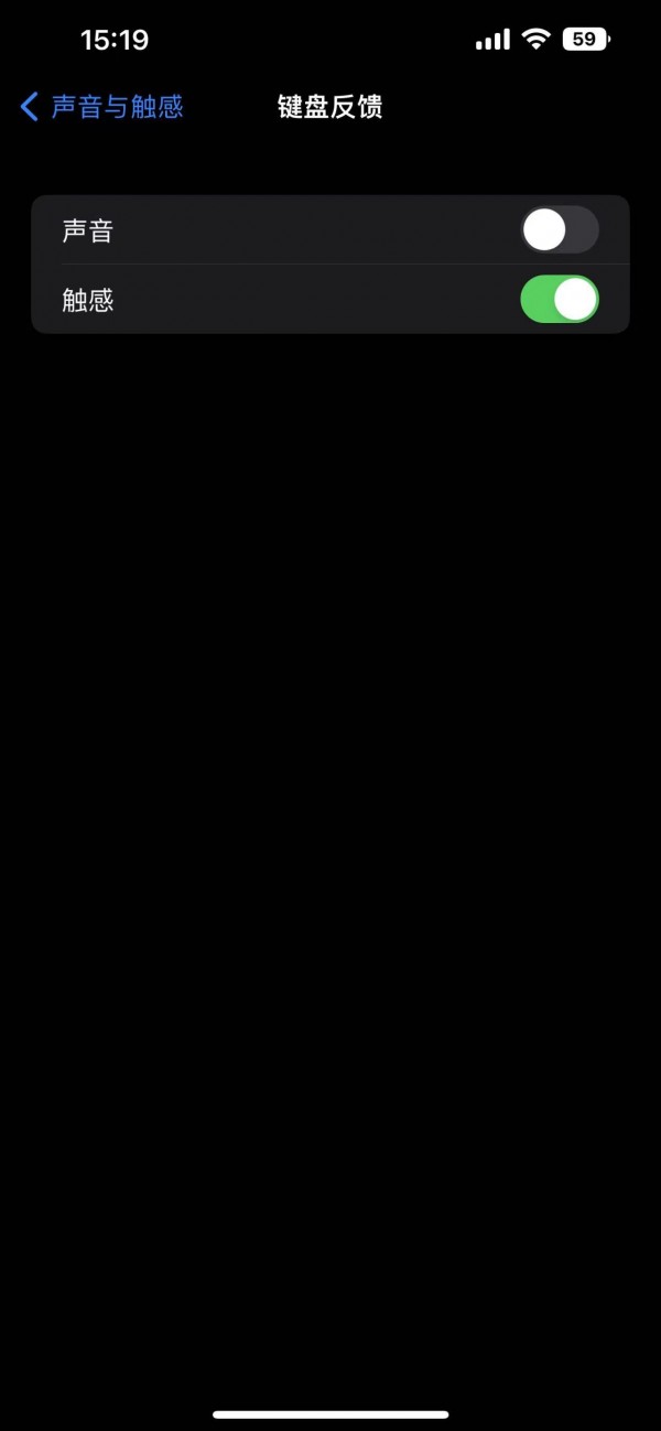 3.在键盘反馈中找到触感选项,点击打开后面的按钮即可开启按键震动。