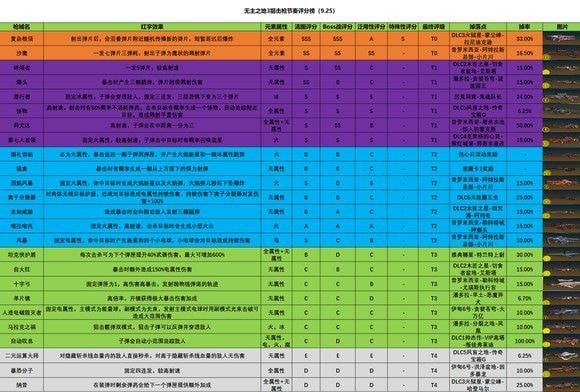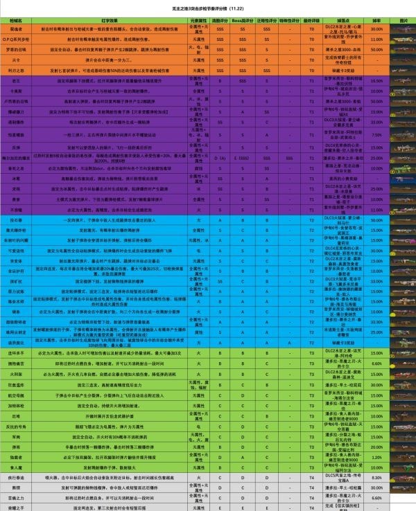 《无主之地3》一直有着众多的武器,武器的属性也各不相同为了能让大家更有效的理解自己用的武器,下面请看玩家“黑色高墙”带来的《无主之地3》全武器强度排行榜,希望能给大家带来帮助。手枪冲锋枪步枪狙击枪重型武器