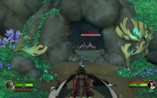 在草地中有个很小的山洞,注意需要进入里面才能完成探索