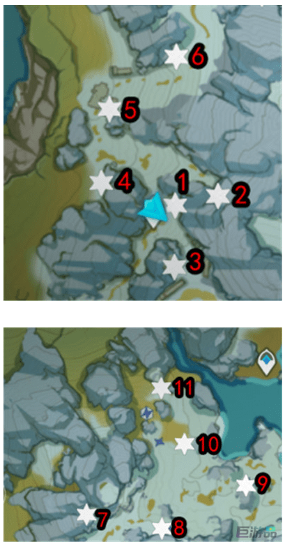 1、肃霜之路宝箱基本上分布在龙脊雪山附近。