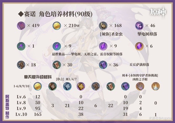赛诺是《原神》3.1版本新出的5星雷属性角色,那么赛诺有着什么样的天赋,该如何培养,请看下面由“Asgater”带来的《原神》赛诺培养一图流,希望对大家有用。