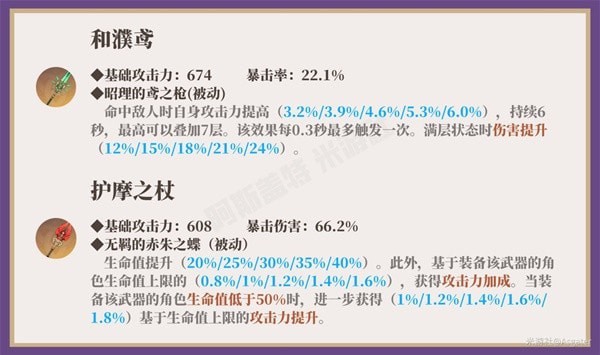 【注】①.拥有上述五星武器时则可直接选择,其中息灾、贯虹之槊需要在圣遗物上多堆叠双暴