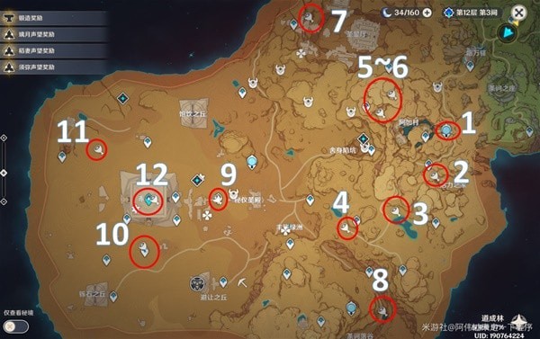 《原神》沙漠地区共有12个观景点,在游戏中的地理志中可以查看。下面请看由“阿伟过来走一下程序”带来的《原神》3.1沙漠地区12个观景点位置介绍,希望对大家有用。