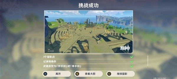 「双手剑」或「单手剑」角色长按攻击键重击后拍照即可完成挑战。