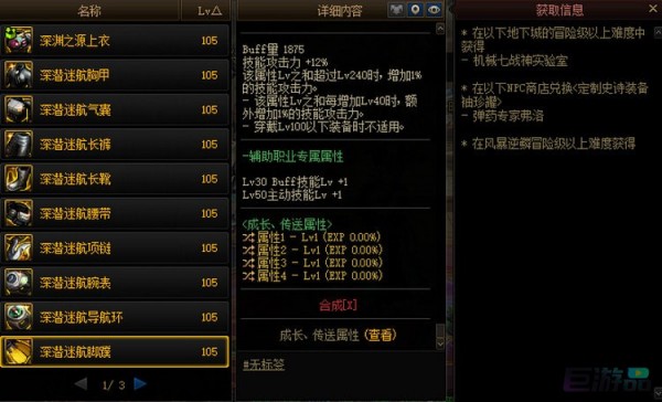 基础Buff量最高514,词条只有12个,分别属于如下三件装备的专属词条: