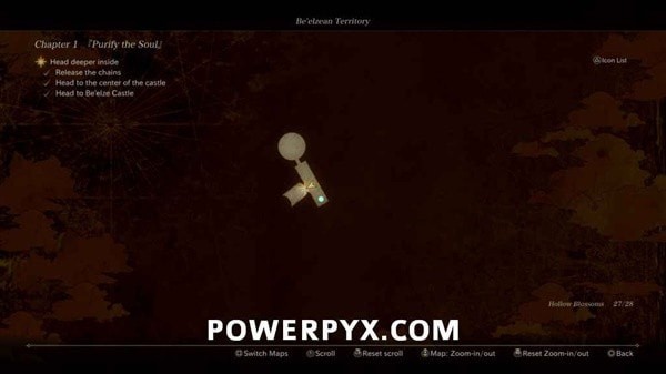 查看地图时,大多数花朵都会显示在主地图上,但在某些章节中地图并不会显示完整内容。如果进入了小型区域,则可以通过□键(PSN)/X键(PC/Xbox)来切换地图。