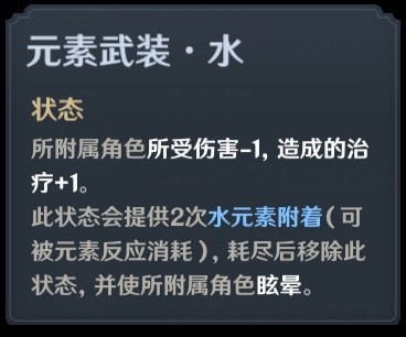 元素附着次数耗尽后, 移除元素武装·水状态, 并为该角色附属角色状态眩晕, 参见