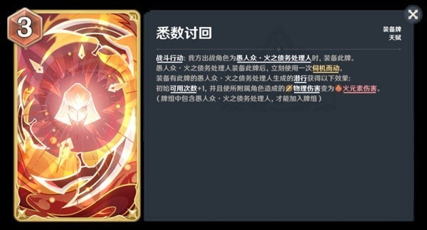 火之债务处理人的天赋“悉数讨回”为元素战技天赋。