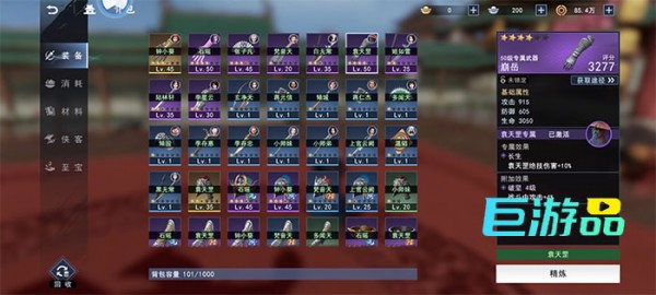 极品武器:崩岳。专属效果长生(绝技伤害+10%),附加效果破坚(战斗中攻击+1%)