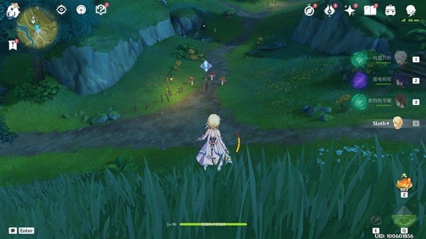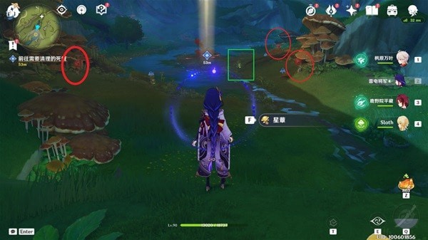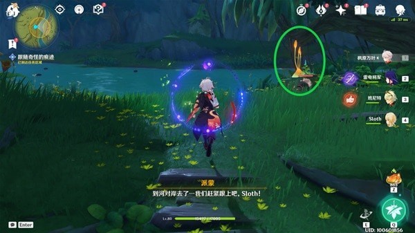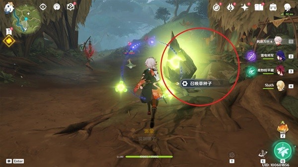 我们来到岸边的时候,可以使用草元素攻击果实释放「四叶印」飞过去