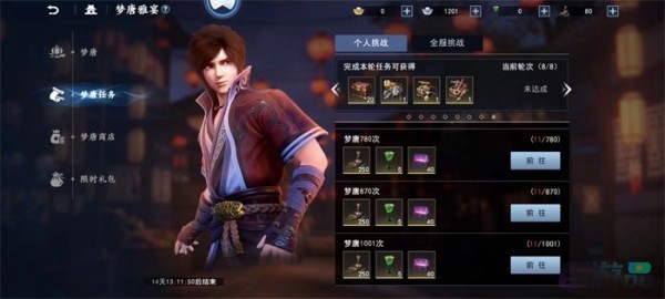 探索达成个人挑战次数可以领取对应奖励,全服探索达到指定次数可以领取全服奖励。