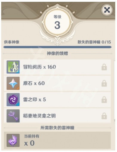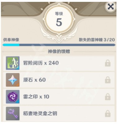 每一座地灵龛都需要一把钥匙来打开,稻妻地区的钥匙主要靠神像与大树等级获得。