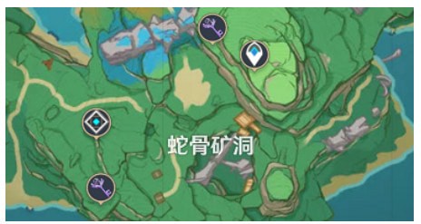 2、紧接着在八酝岛的蛇骨矿洞的左边秘境传送,往地图南方向走,可以在半坡上发现一个,蛇骨矿洞右上角的传送点降落,站在山顶往西北方向看去即可看见第二个。