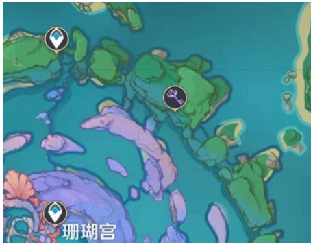 3、在海祇岛最上方的传送点降落,沿着山的边缘往下飞,即可在地面瀑布的山体内测看见一个。