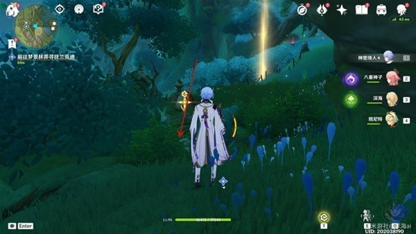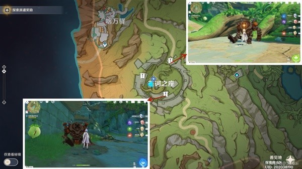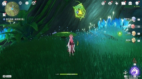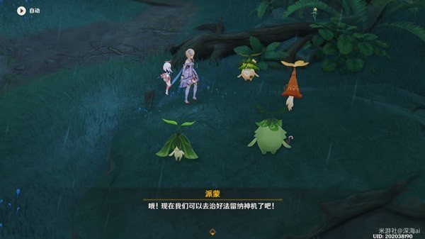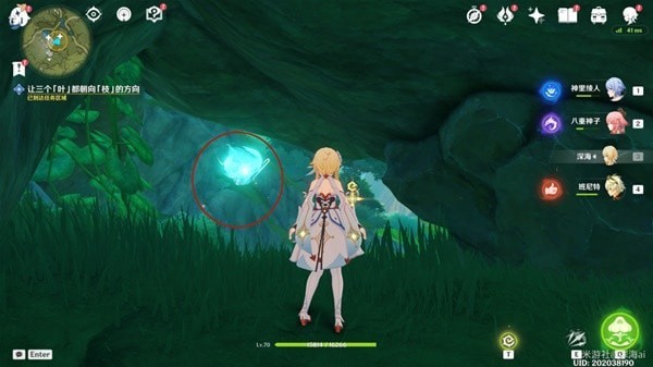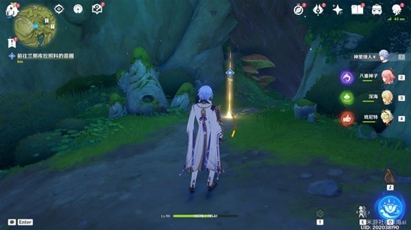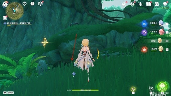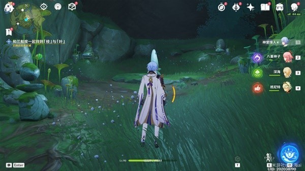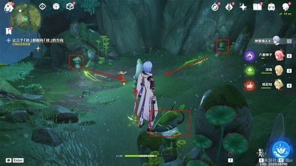 两处蕈兽都在树上,可以通过用草元素激活众叶觉蕊来召唤出四叶印快速移动。