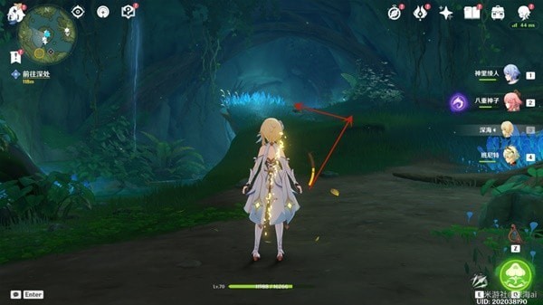 2.跟随指引,在不被发现的情况下前进。(不进入蕈兽身旁的红圈内)