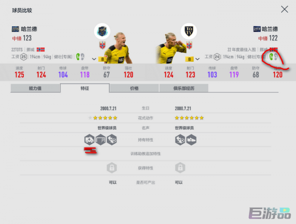 而且22ts的哈兰德,还有54脚 + 搓射。可以说完全没毛病。唯一的遗憾就是有一个玻璃人的属性。