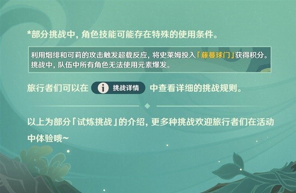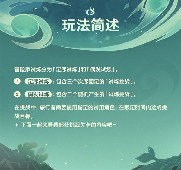 《原神》3.2版本已经更新,并且即将开始新的版本活动——冒险家试炼。下面请看由“飞翔的丘丘人”带来的《原神》3.2冒险家试炼活动玩法说明,包含活动时间与奖励介绍,希望对大家有用。