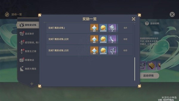 第5个秘境是「偶发试炼」 3个「试炼挑战」内容是随机的