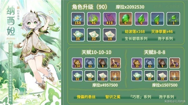 纳西妲并不怎么依赖5星武器,因为有很多4星及3星武器,也是精通副词,可以作为下位替代。