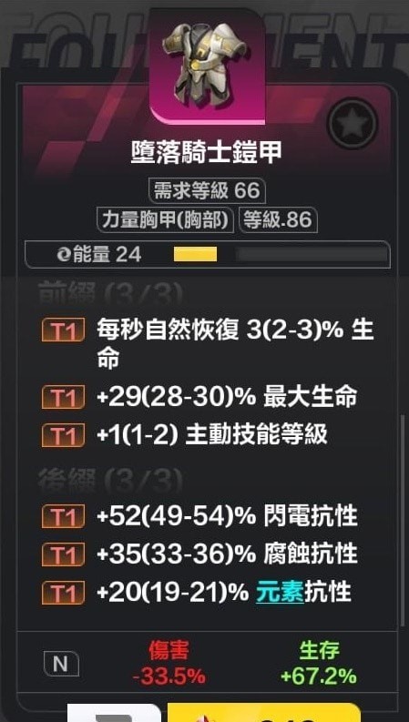 这件装备最麻烦的就是,它是实际抗性要相同,所以我们头跟鞋子的抗性需要去分配,其他地方有给抗性的也要弄掉。