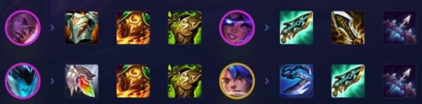 1.最后的轻语(萨弥拉) 2.海克斯科技枪刃(萨弥拉) 3.无尽之刃 4.救赎 5.日炎斗篷(瑟庄妮) 6.最后的轻语(厄斐琉斯) 7.狂徒铠甲(瑟庄妮) 8.海克斯科技枪刃(厄斐琉斯) 9.巨人杀手 10.日炎斗篷(艾克) 11.石像鬼石板甲 12.狂徒铠甲(艾克)