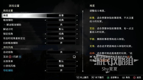 前言1、关于难度,本作所有的收集要素以及奖杯成就都不涉及难度高低。根据自己的需求选择,如果觉得自己技术够好,就直接战神难度起步(新手不推荐,战神难度中途不可更换,其他难度可以随时更换),如果只是单纯的体验剧情,完全可以使用故事难度。