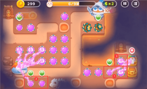 9、左上魔法球,左侧三个魔法球,右下两个魔法球,右上一个魔法球。