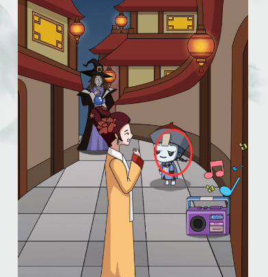 1、首先将左侧的树叶翻开,点击右上的蜘蛛,点击后方的影子,然后得到小猫,蜘蛛网和女巫(女巫不是需要的物品,之后才能用到)。