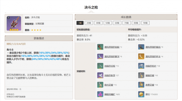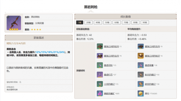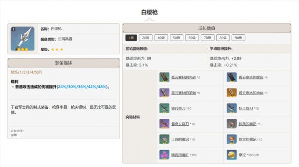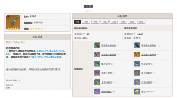 该武器为暴击率加成武器。可以说是专武的四星替代了。而且在高精炼的情况下与精一专武的差距非常小,即便是精一也不虚于和璞鸢。