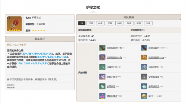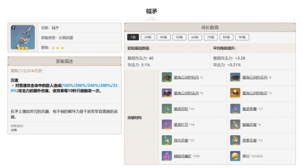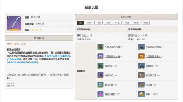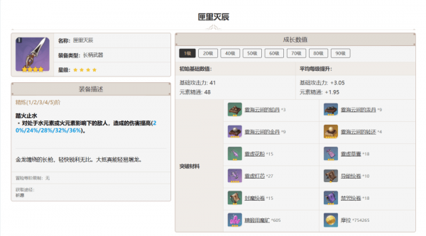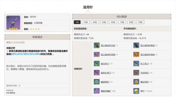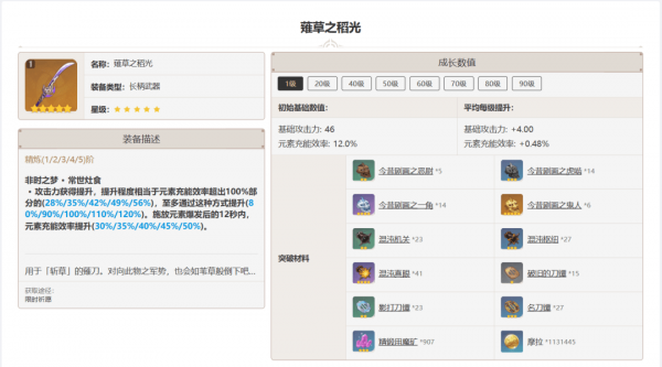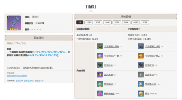 满级(90级)攻击力:510 元素充能效率:45.9%