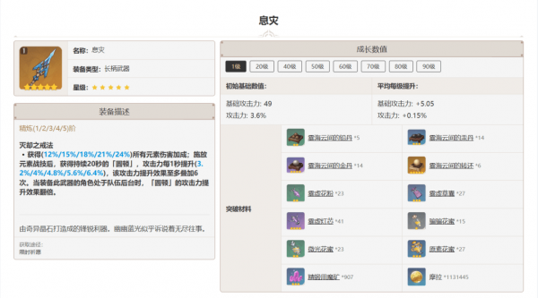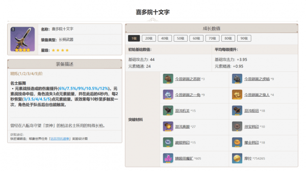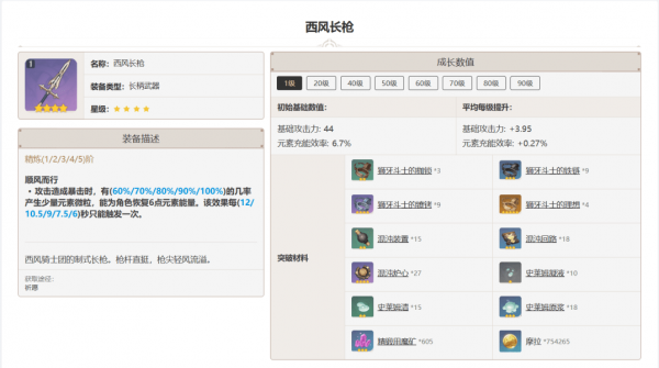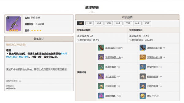 满级(90级)攻击力:608 元素充能效率:55.1%