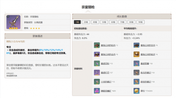 满级(90级)攻击力:608 暴击伤害:66.2%