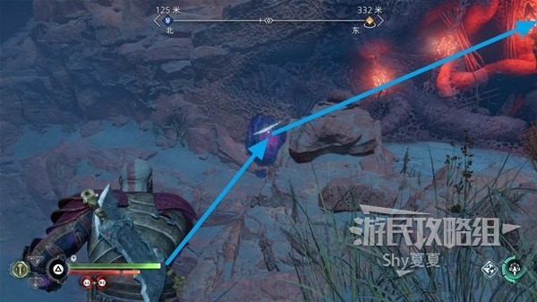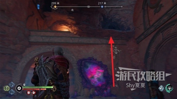 进入洞中,有很多黄昏石,利用黄昏石,击败敌人,然后从下图箭头处爬上去。