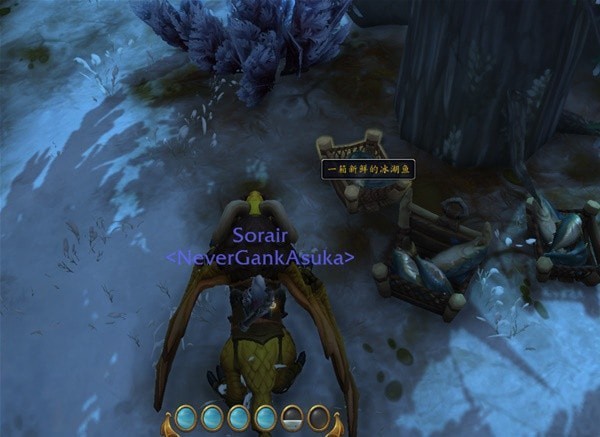 一箱新鲜的冰湖鱼持续时间为15分钟,我们必须在持续时间内尽快飞回索德拉苏斯巨壳可汗身边,将一箱新鲜的冰湖鱼交给耐心的瓦尔戈。